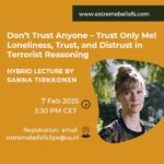 Lecture “Don’t Trust Anyone – Trust Only Me! Loneliness, Trust, and Distrust in Terrorist Reasoning” by Sanna Tirkkonen
